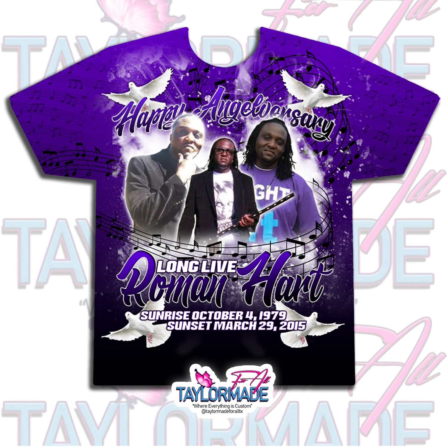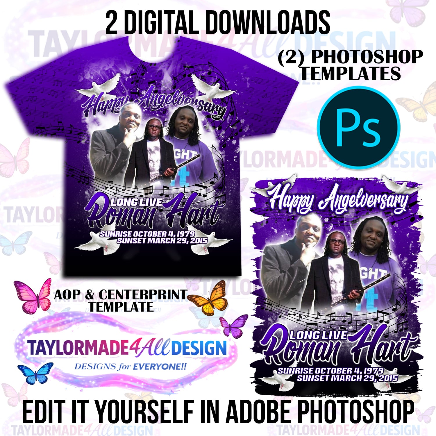 Digital Photoshop 3D Purple Music Notes Rip Memorial Editable Template for Sublimation or DTF